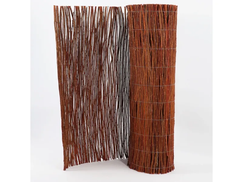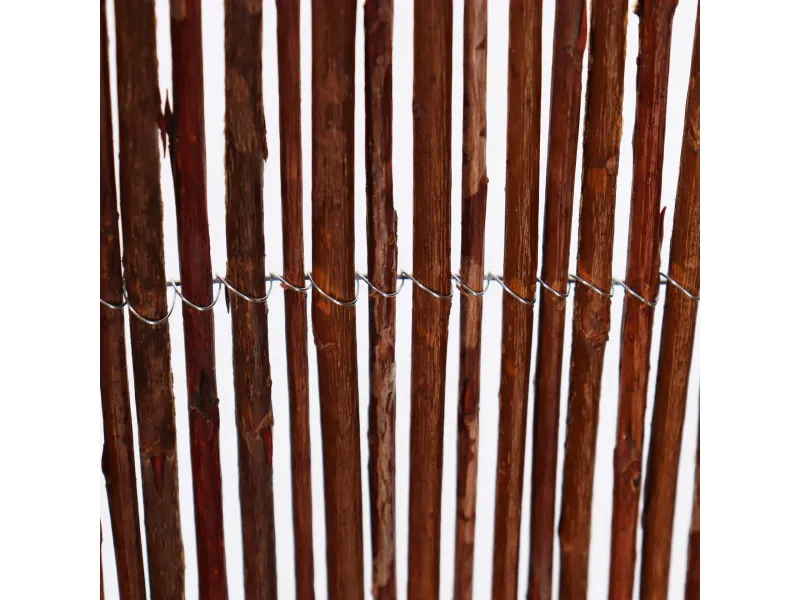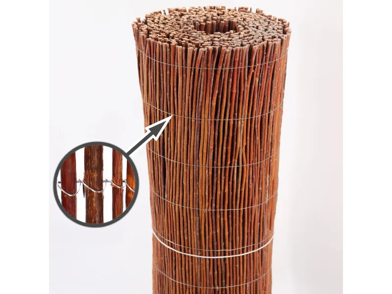 Highlights: Natürliches Weidenholz, robuste Drahtverbindung, flexible Anpassung an Gelände, einfache Montage, vielseitig als Sicht- oder Windschutz einsetzbar, dekorative und langlebige Lösung für Außenbereiche.