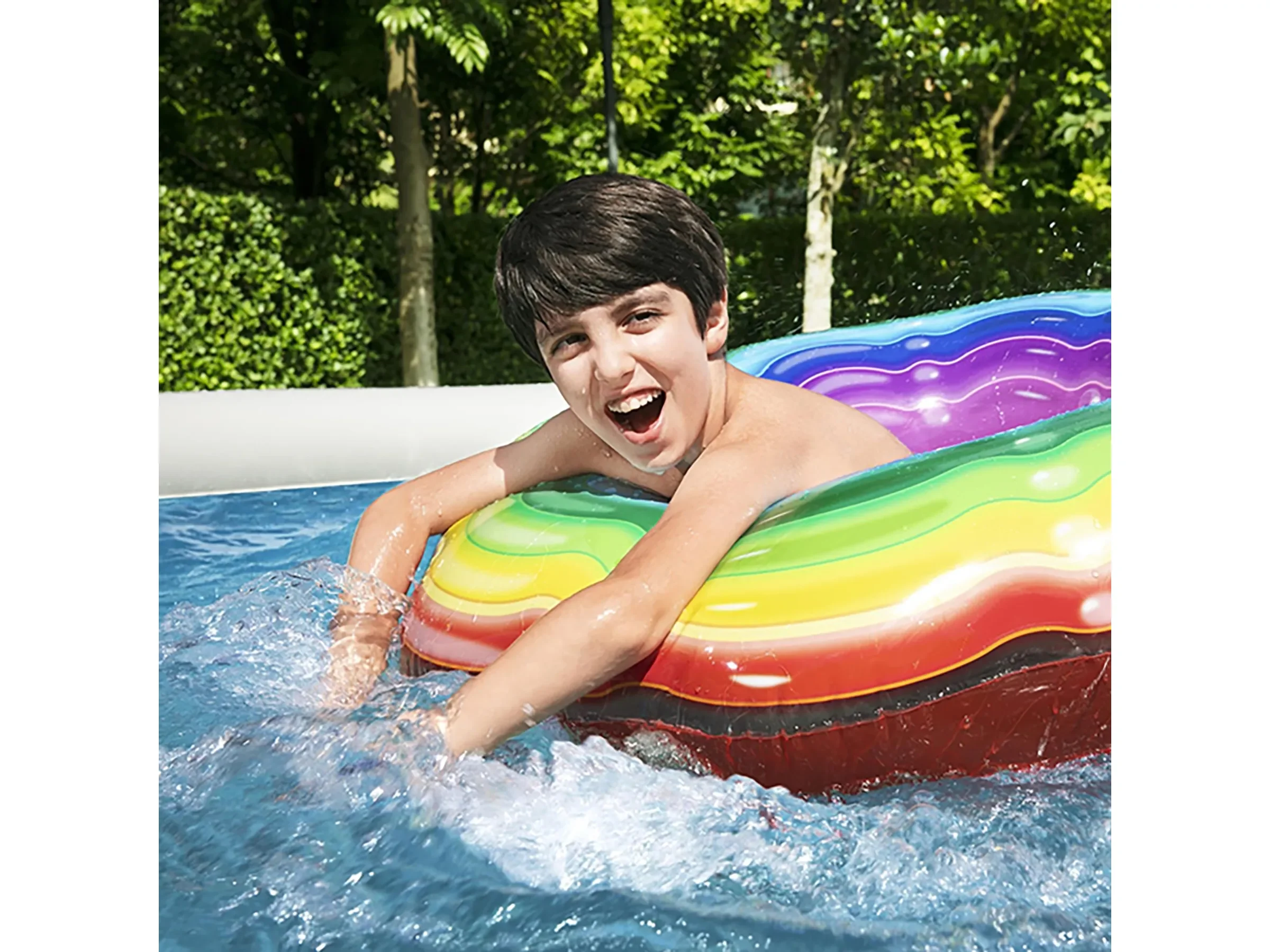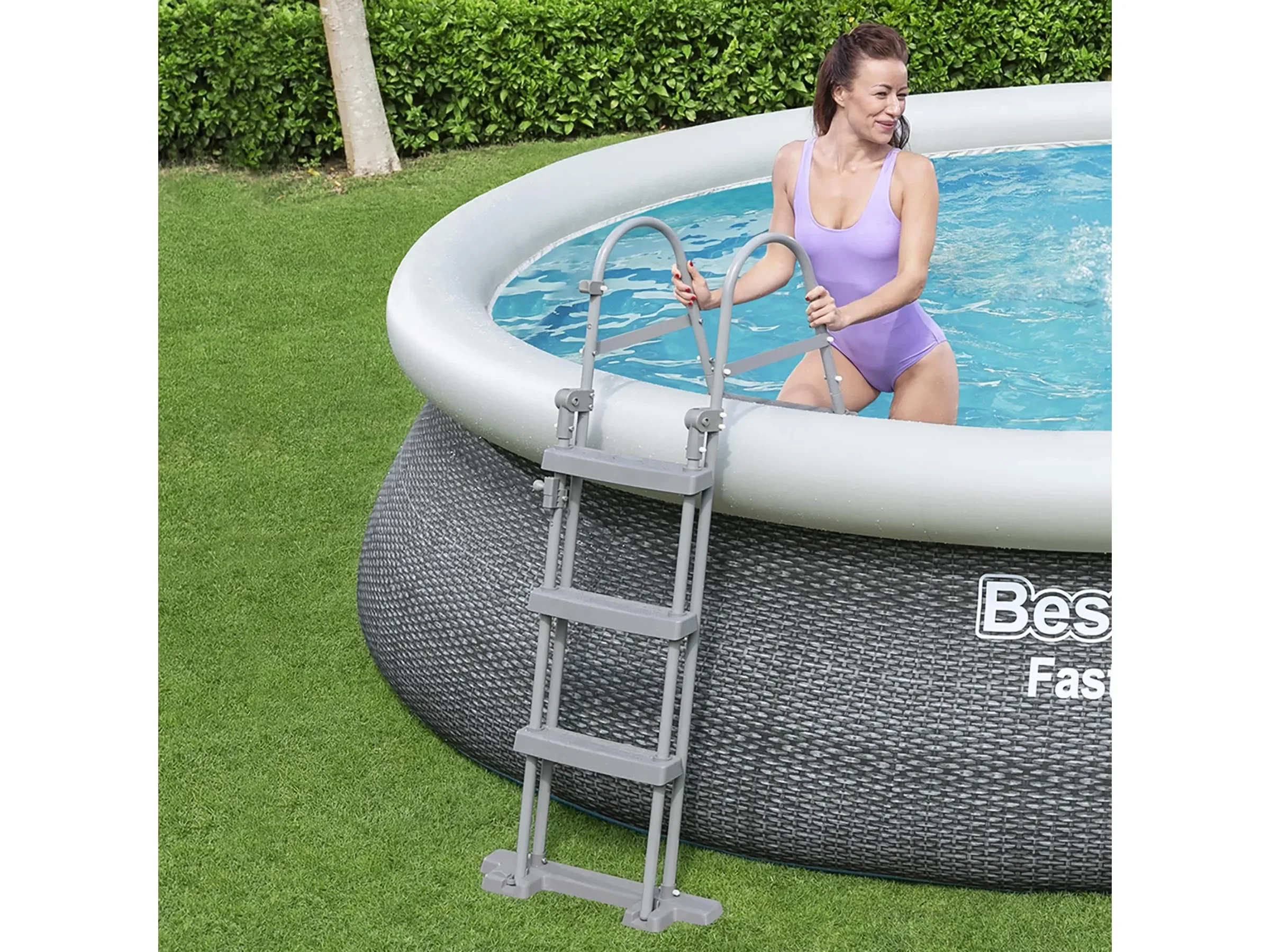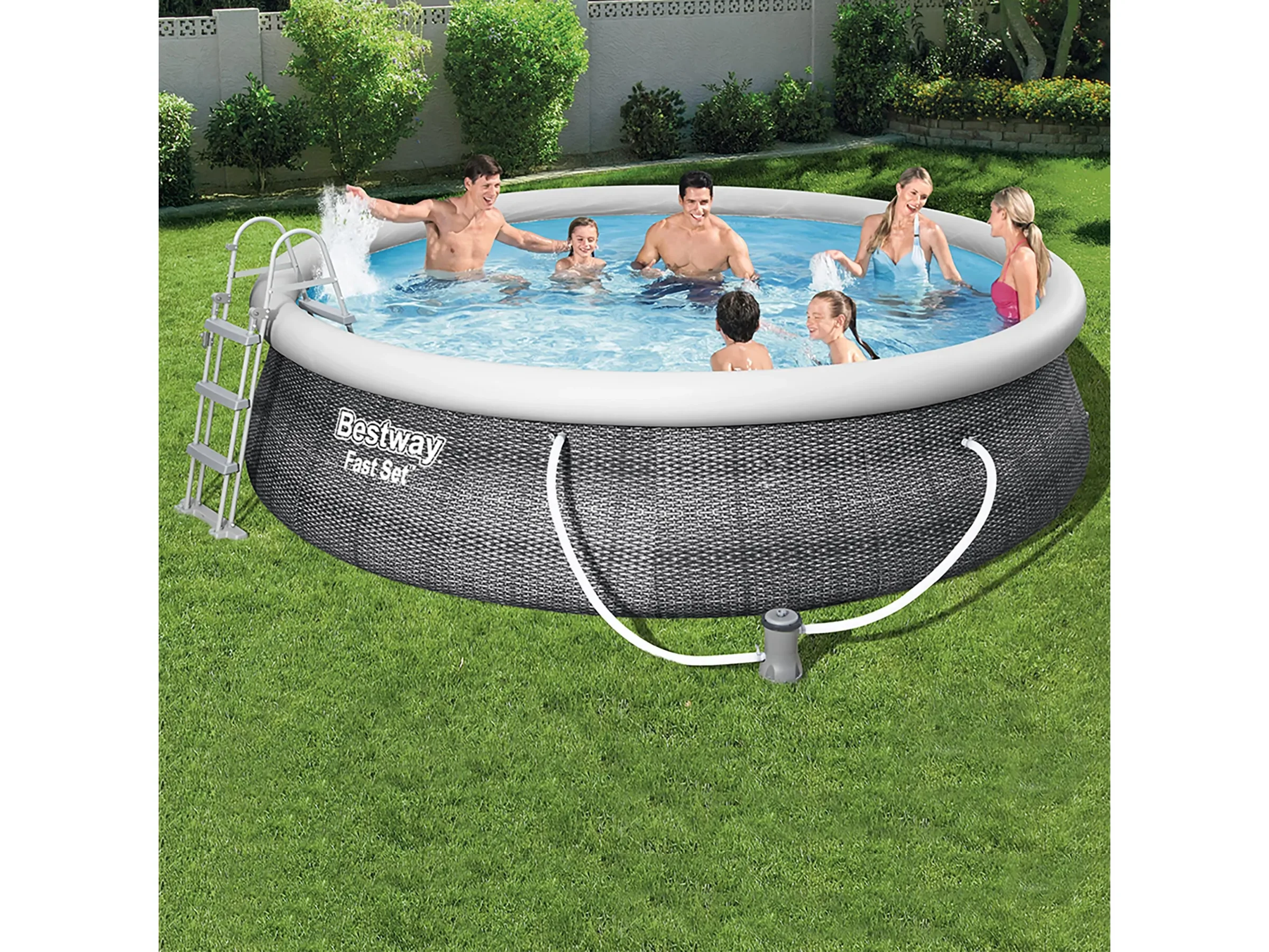 Highlights: Schneller Aufbau ohne Werkzeug, selbstaufrichtende Konstruktion, langlebige TriTech-Folie, elegante Rattan-Optik, leistungsstarke Filterpumpe, Komplettset für sofortigen Badespaß.