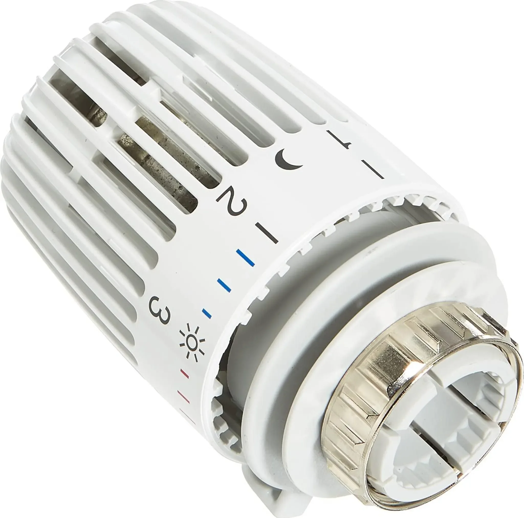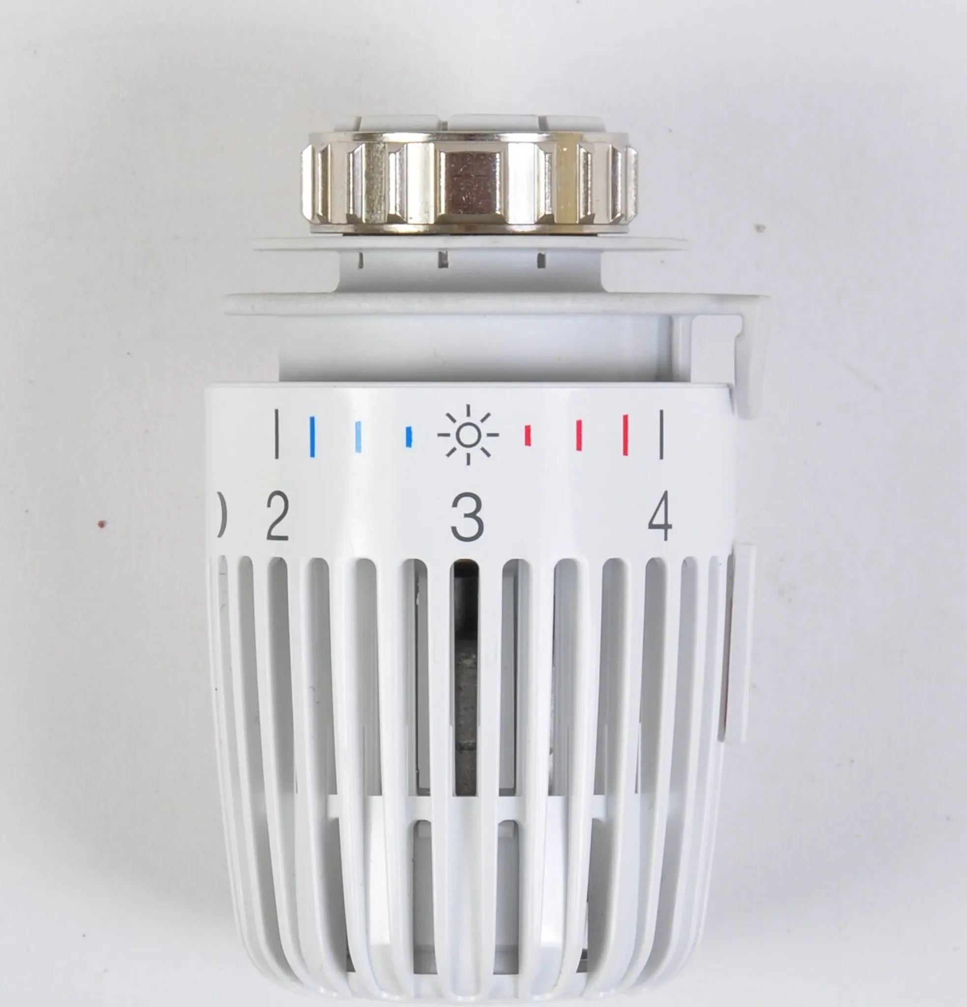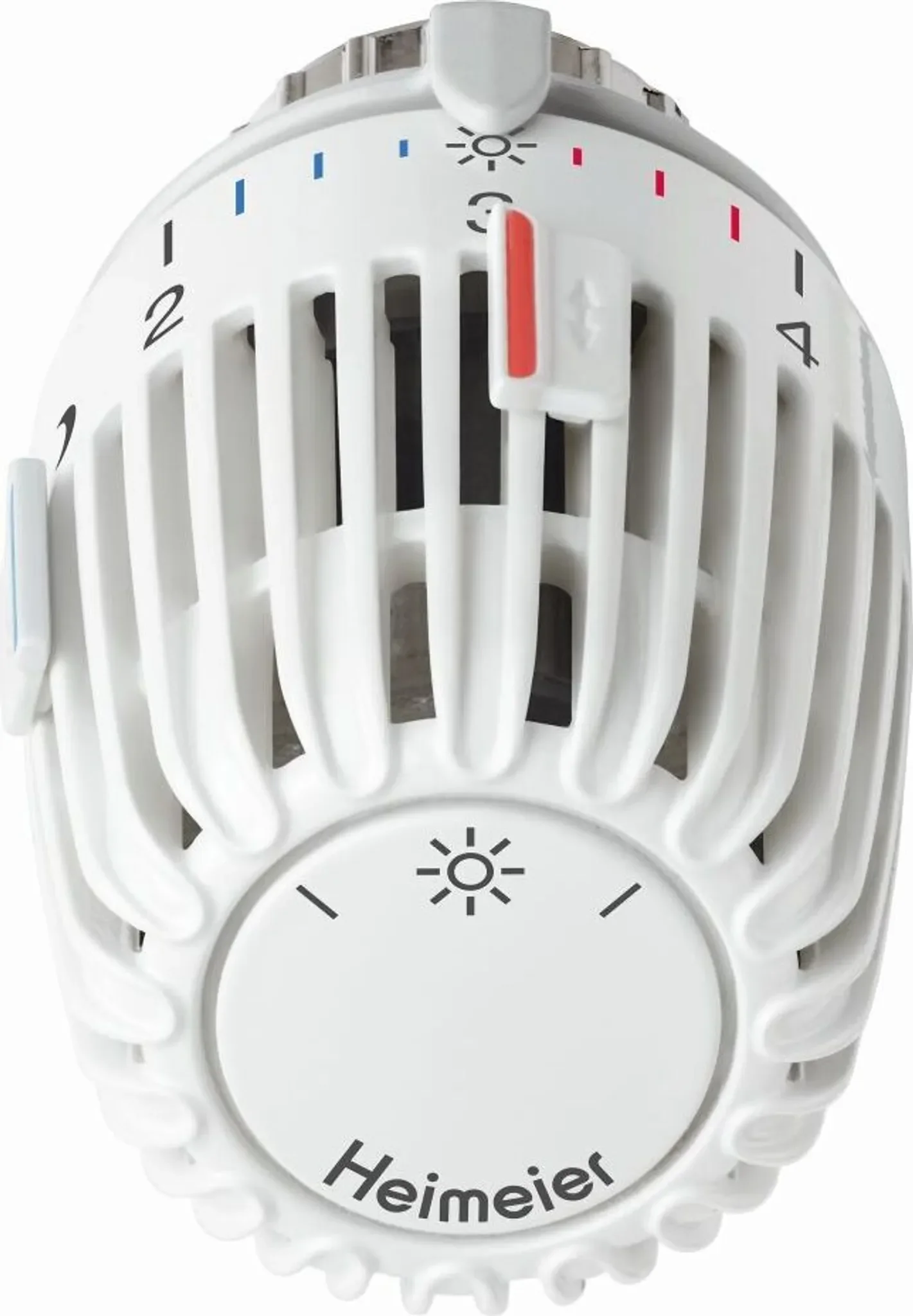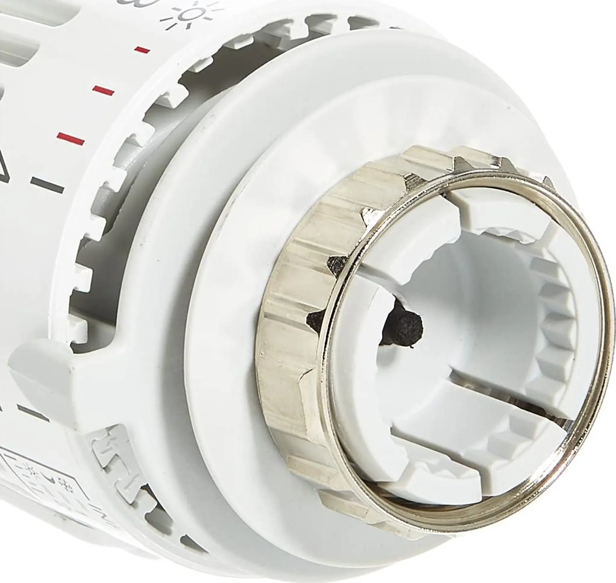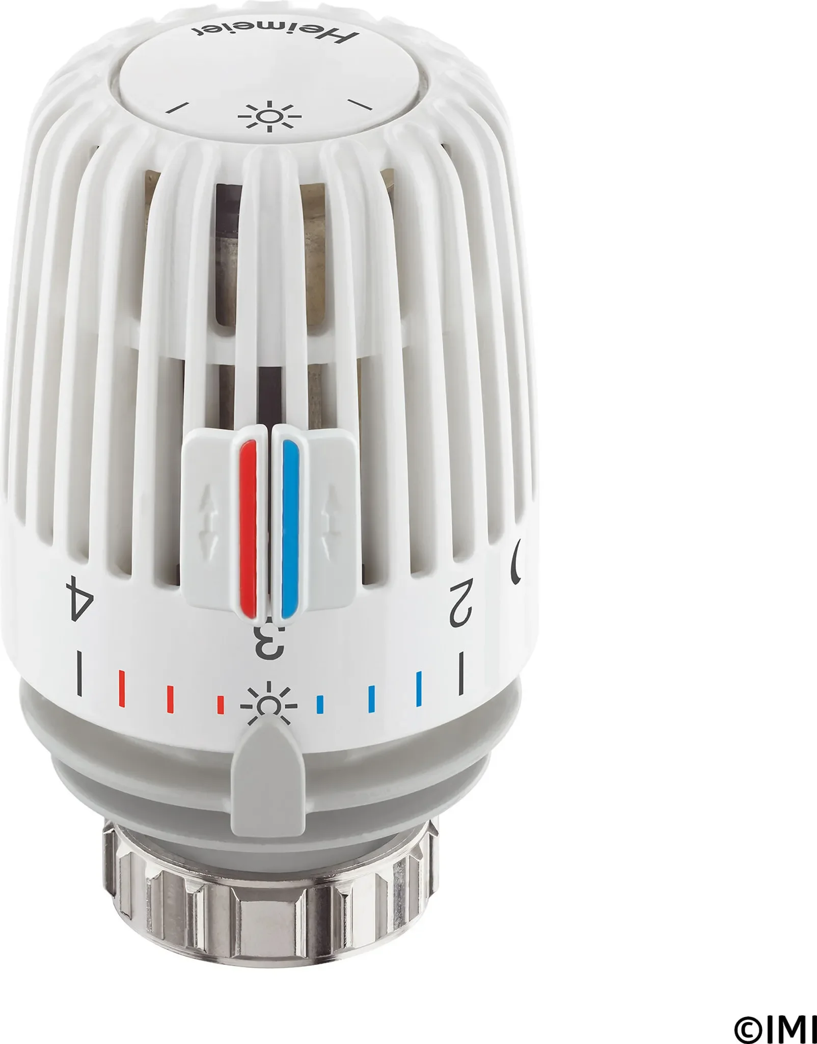 Der flüssigkeitsgefüllte Thermostat sorgt für hohe Stellkraft und hohe Regelgenauigkeit – selbst bei kleinen Auslegungsregeldifferenzen. Zwei Sparclips ermöglichen eine Begrenzung oder Blockierung eines gewünschten Temperaturbereichs. Die Skalenhaube in Weiß (RAL 9016), erfühlbare Markierungen und Symbole für Grundeinstellung sowie Nachtabsenkung erleichtern die Bedienung zusätzlich.