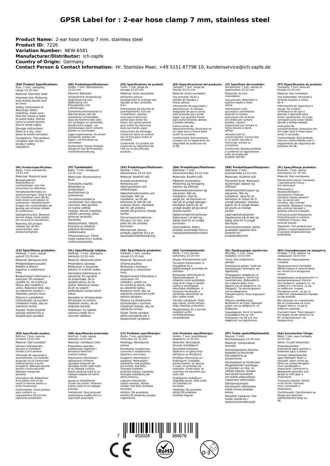 ICH-ZAPFE – 2-Ohr-Schlauchklemme NW 7 mm, Edelstahl