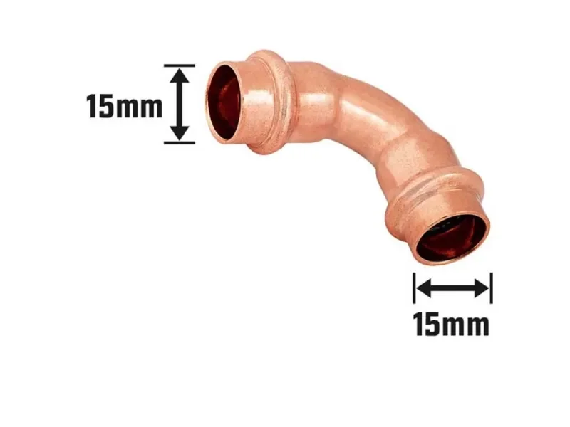 | Im Paket | 10 × Pressbogen Ø 15 mm Kupfer 90° |