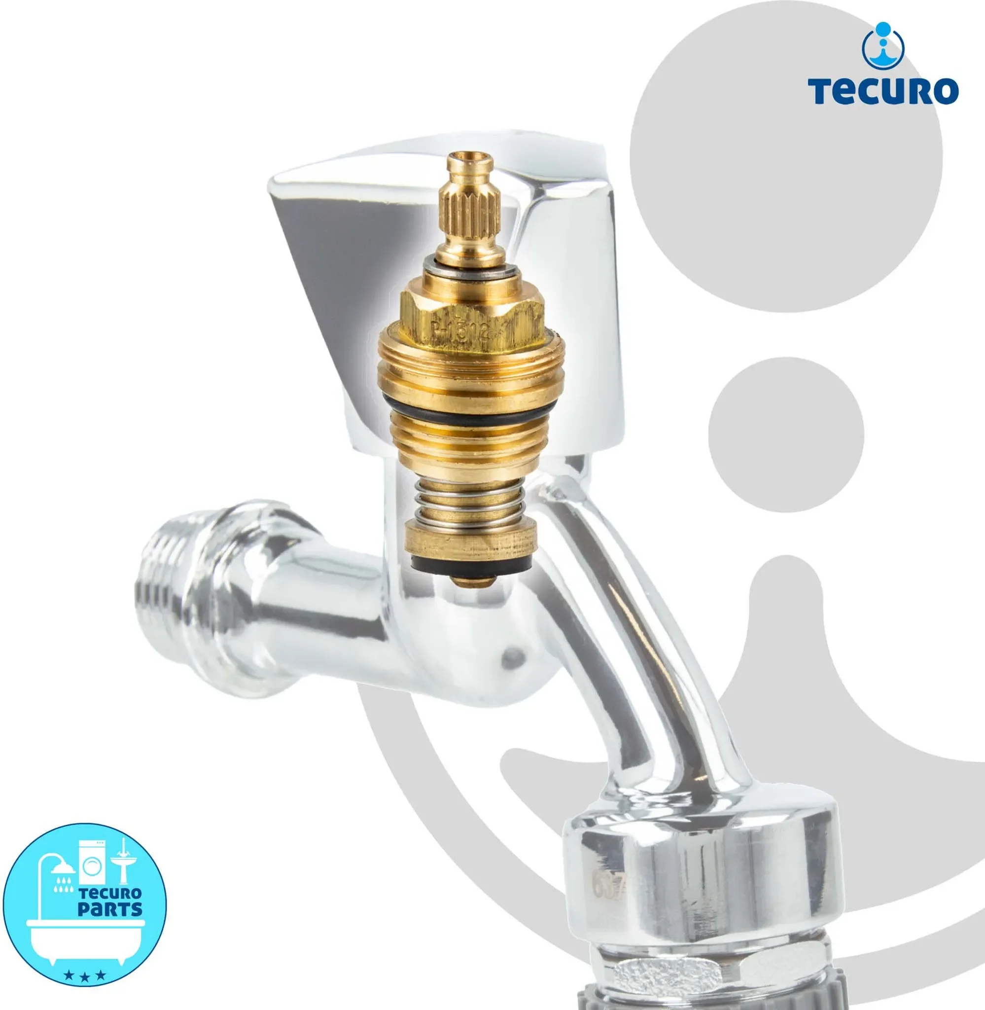 Das Universal-Ventiloberteil von tecuro eignet sich für nahezu alle gängigen Sanitärarmaturen im Bad, in der Küche sowie im Keller. Es kann für Kalt- und Warmwasser genutzt werden und überzeugt durch eine zuverlässige Funktionsweise im täglichen Einsatz.